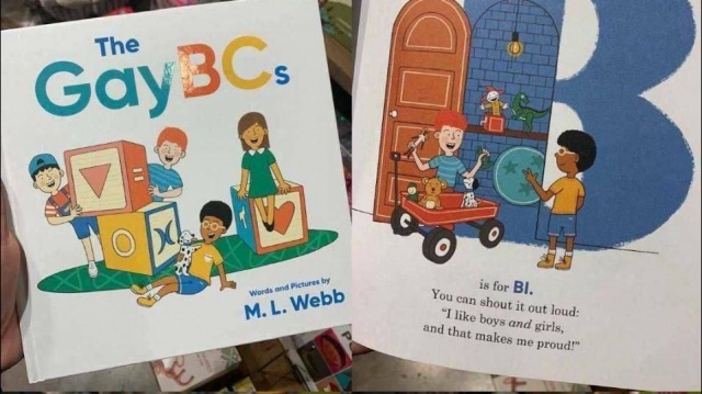 "Как националисты из украинского "Азова" росли на вот такой "Повстанческой азбуке" (фото 2), где герои-бандеровцы убивают плохих москалей. А всплеск в США количества ЛГБТ-активистов связывают с изданием гей-букваря (фото 3), где нормальными представлены только гомосексуальные пары", - продолжил лидер "РОДИНЫ".