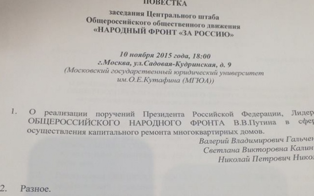 Сегодня, 10 ноября, председатель партии "РОДИНА", депутат Госдумы Алексей Журавлёв принял участие в заседании Центрального штаба Общероссийского общественного движения "Народный фронт "За Россию".
